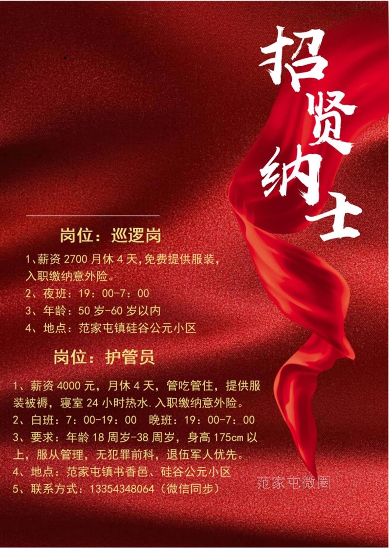 招聘护管员和巡逻岗¥4000元